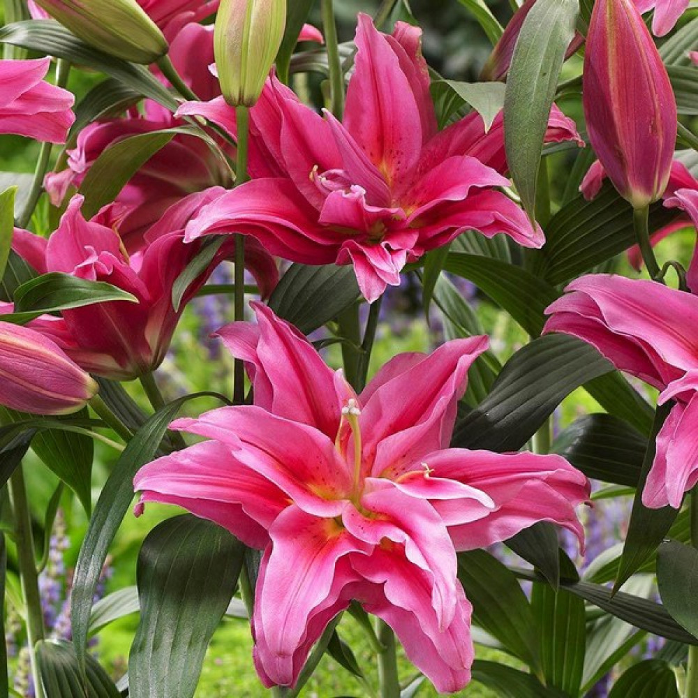 Восточные лилии создают неповторимую роскошь и обволакивают сад пьянящим ароматом. Их огромные соцветия-колокола в разы крупнее, чем у азиатских, видовых или тигровых лилий, а яркая расцветка с характерным крапом делает их самыми узнаваемыми среди остальных групп лилий.