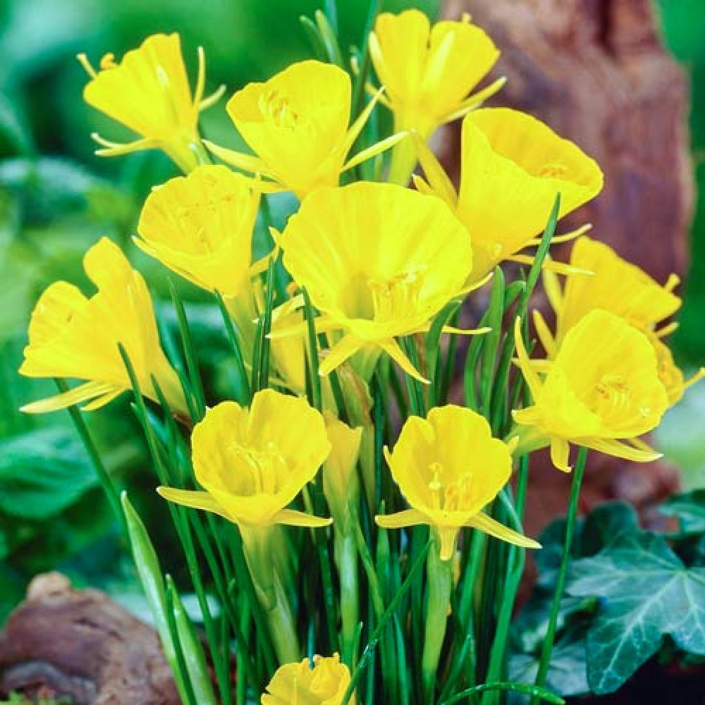 Нарцисс мини Голден Беллс — это карликовый сорт с высотой стебля не более 20 см. Цветы имеют золотисто-желтый цвет. Внутренние лепестки собраны в трубочку «граммофон» и перехвачены с внешней стороны разрезной звездочкой из тонких игольчатых лепестков. Листва многочисленная, тоже тонкая и игольчатая. Лучшее место для высадки мини-нарциссов — альпинарий.
