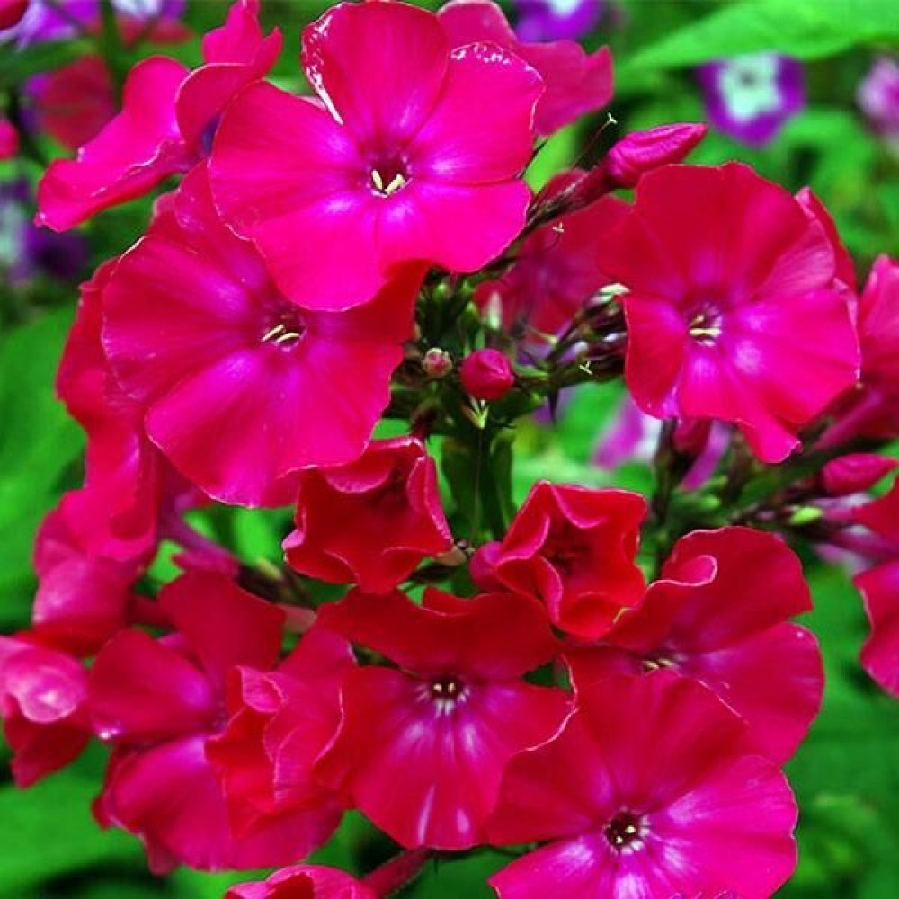 Огромные малиново-розовые цветки собраны в крупные овально-конические соцветия. Что важно для флоксов такой окраски, они не выгорают на солнце. Цветет этот сорт очень эффектно и продолжительно. Стебли очень прочные.