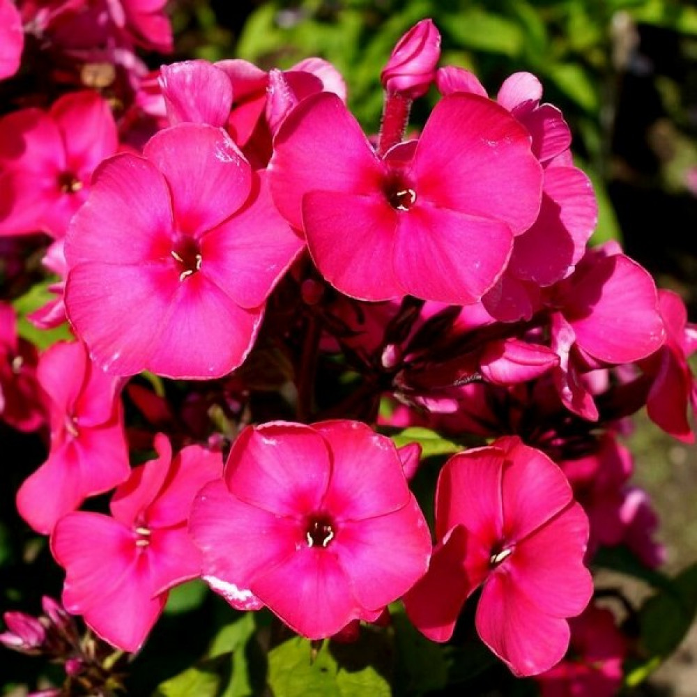 Посадка флокса: Посадка флоксов весной в грунт осуществляется следующим образом: черенки высаживаются в подготовленную и взрыхленную грядку с соблюдением дистанции в 30 см — это что касается низкорослых сортов. Высокие же сорта необходимо высаживать на расстоянии 50-60 см друг от друга — места им потребуется много. Сразу после посадки на протяжении пары недель следует обильно поливать растения, чтобы они быстрее укоренились и пошли в рост. Уход за флоксом сводится к регулярному поливу, обработке от вредителей, и внесению комплексных удобрений. Растения нуждаются в подкормке на протяжении всего вегетационного периода, за сезон проводят 5-7 подкормок. Почву необходимо проливать на всю глубину залегания корневой системы. Поливать лучше всего рано утром или поздно вечером. Ни в коем случае нельзя поливать флоксы слишком холодной водой в жаркий день, это может привести к ожогу растения и растрескиванию стебля. Также нежелательно, что бы при поливе вода попадала на нижние листья. Грунт на клумбе с флоксами должен быть рыхлым и питательным — это два главных требования цветка к почве. Оптимальный вариант — суглинистый грунт, имеющий слабокислую или же нейтральную реакцию. Если почва закислена, перед посадкой ее необходимо произвестковать — иначе расти и цвести флоксы нормально не будут. Если флокс Younique Old Cerise (Юник Олд Церизе) растет на юге, укрытие не требуется. А вот уже начиная со средней полосы желательно обеспечить растения укрытием на зиму. Перед наступлением холодов флоксы обрезают практически под корень, а прикорневой круг мульчируют соломой, другой органикой. Можно использовать для укрытия и агроволокно, мешковину.