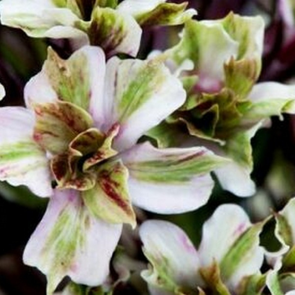 Этот флокс будут очень интересен для любителей всего необычного. Очень крупные соцветия, состоящие из стерильных бело-зеленых цветков с перекрученными листками и пурпурным налетом на прицветниках. Цветение очень продолжительное. Высота - 70 см.