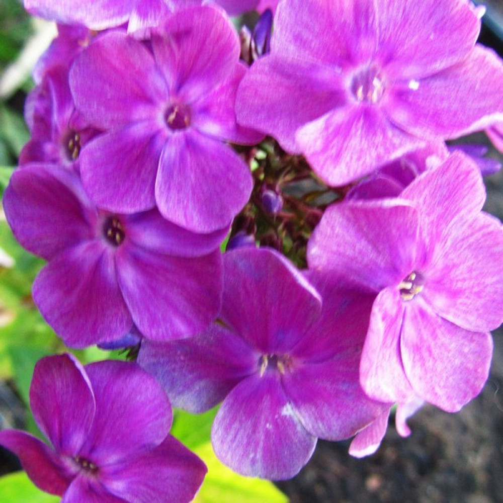 Флокс дымчатый, слилово-сиреневый с белым центром в лиловой окантовке. Большое красивое соцветие.