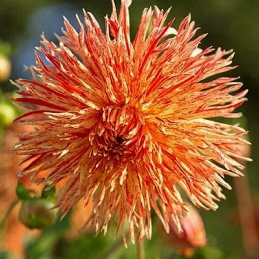 Георгина бахромчатая Reijmans Firecracker (Рейманс Файркрэкер) - цветет в период с июля по октябрь, образуя причудливые цветы желто-красного цвета. Диаметр цветка при роспуске 15-20 см. Цветение всегда обильное и продолжительное. Высота растения 80-100 см.