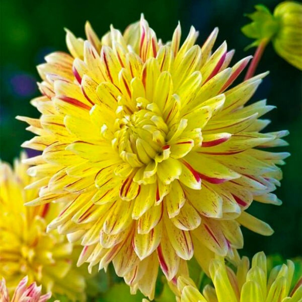 Многогранная и красочная. Цвет желтый с бордовыми штрихами. Куст крупный с огромными бутонами. Стебли плотные, не требующие опоры. Высаживают георгины на хорошо освещенных, защищенных от ветра местах. Предпочитают легкую, плодородную землю. Цветет продолжительно с июля по сентябрь. Для более обильного цветения удаляют боковые бутоны. Идеально подходит для срезки, так как цветы долго стоят в букете.