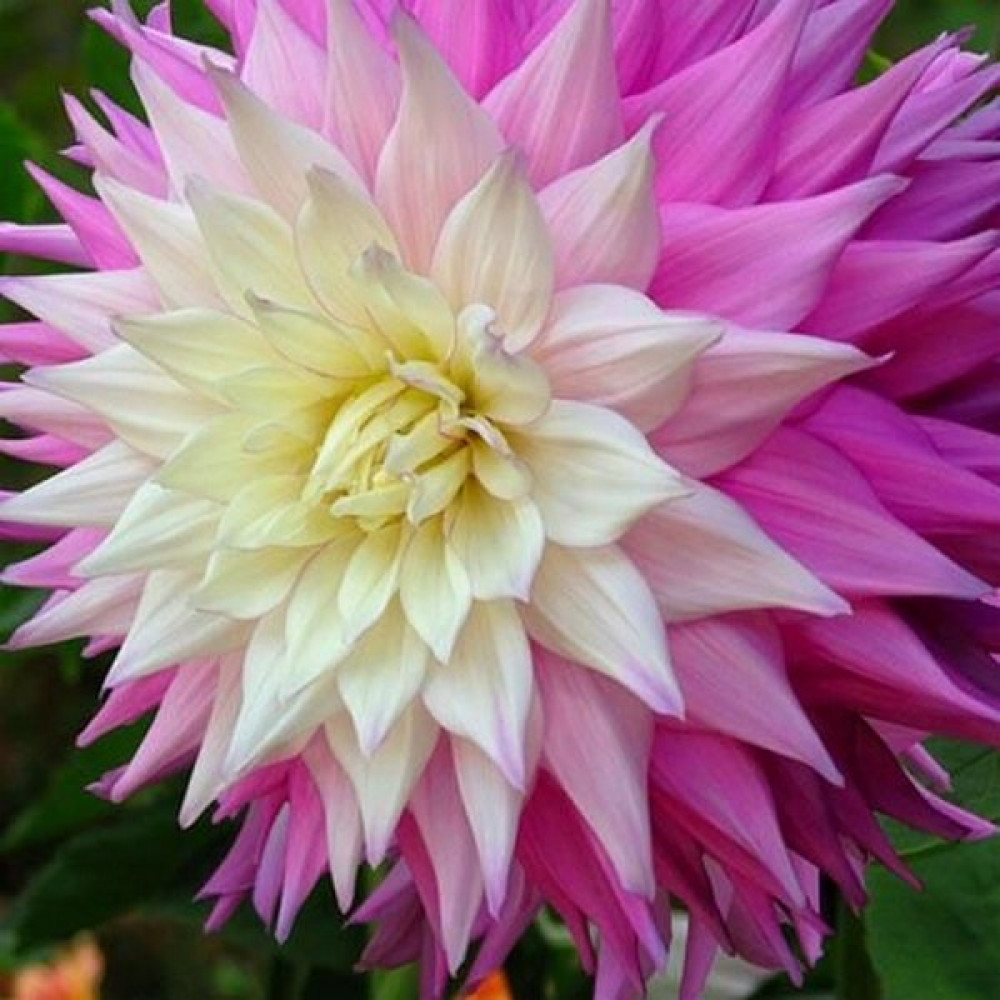 Георгина декоративная макси Sir Alf Ramsay (Сэр Альф Рамсэй) Крупноцветковый сорт. Кажется, что на одном лепестке смешана целая палитра красок: от насыщенного сиреневого цвета до нежного, лавандового-лилового с кремовой серединой. Стебли толстые и плотные красно-бурого оттенка. Цветение бурное и продолжительное с июля по октябрь. Для более обильного цветения удаляют боковые бутоны. Идеально подходит для срезки. Георгины светолюбивые растения, поэтому рекомендуется их высаживать на хорошо освещенных местах, защищенных от ветра. Предпочитают легкую, плодородную землю. Георгины неприхотливы и легки в выращивании.