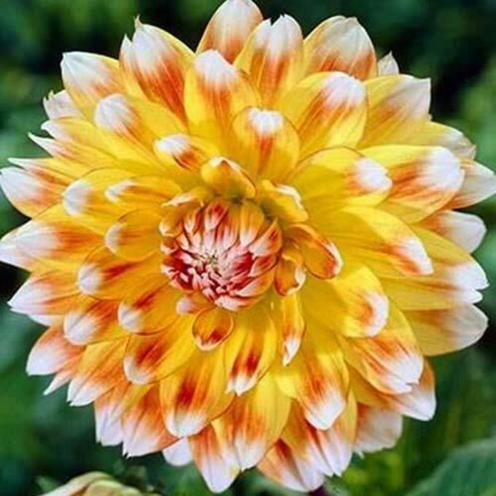 Георгина декоративная Peaches & Cream (Пичез Энд Крим) - цветы лимонного цвета переходящие в кремовый с белыми кончиками. Высота 120 см. Размер цветка 14 см.