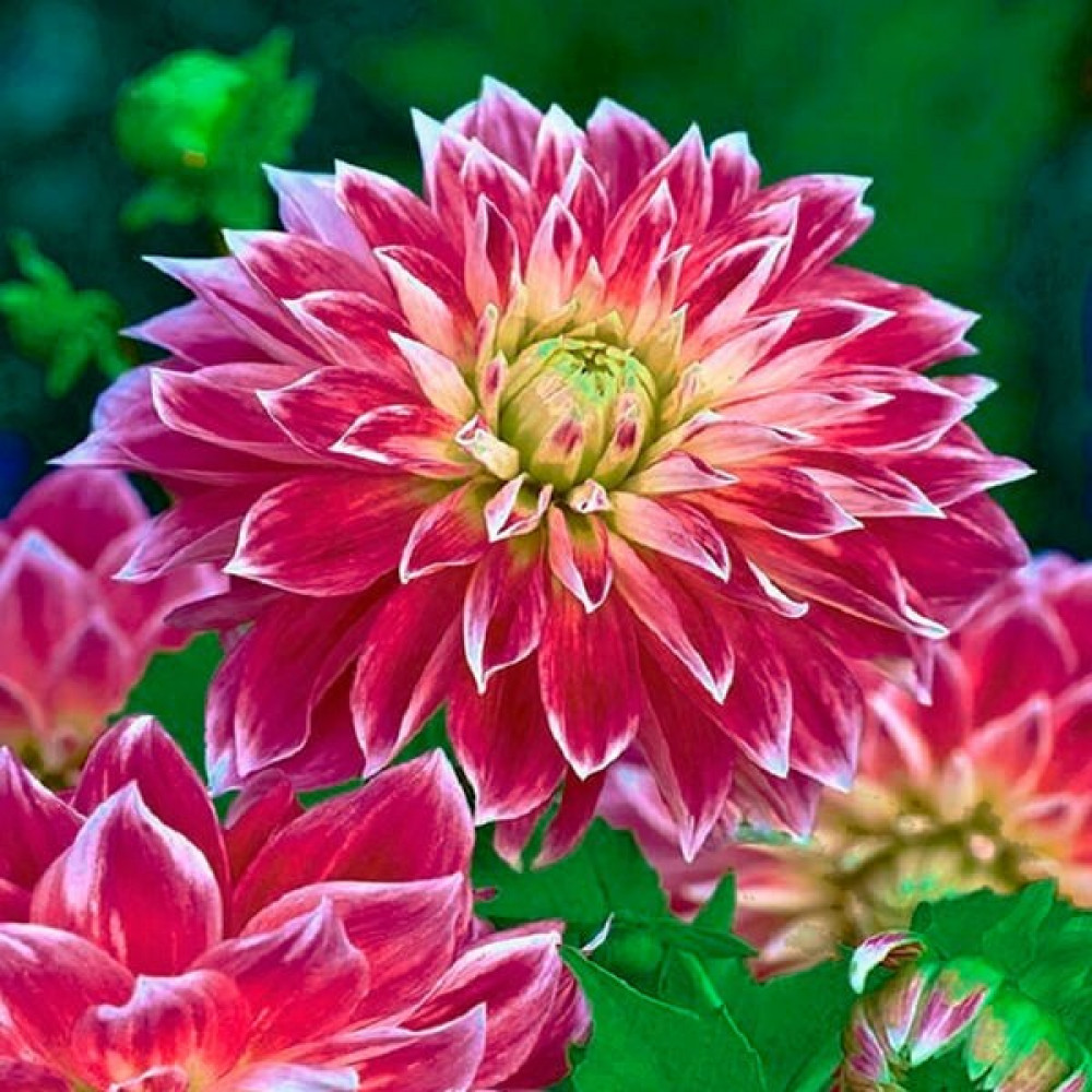 Имеет очень продолжительный срок цветения. Данный вид обладает крепкими стеблями, которые не ломаются даже при сильном ветре. Этот сорт относится к декоративным георгинам - самому представительному и разнообразному виду с необычайно пышными, полностью махровыми цветками. Используется в основном для групповых посадок или срезки. Предпочитает солнечные, защищенные от сквозняков места.