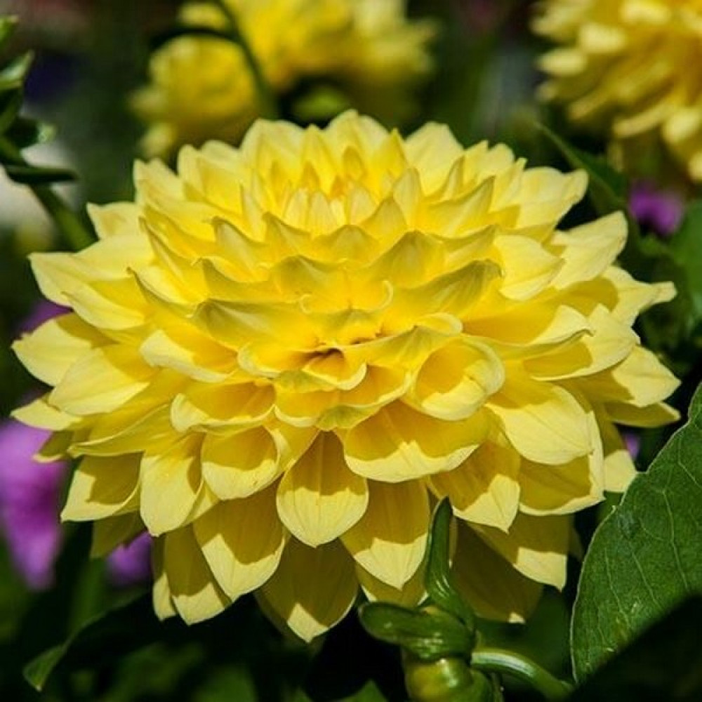 Георгина гэллери Gallery Pinto (Гэллери Пинто) - бордюрное растение. Высота до 35 см. Цветки пышная корзинка 14 см, лимонного цвета. Подходит для патио. Цветение обильное и продолжительное.