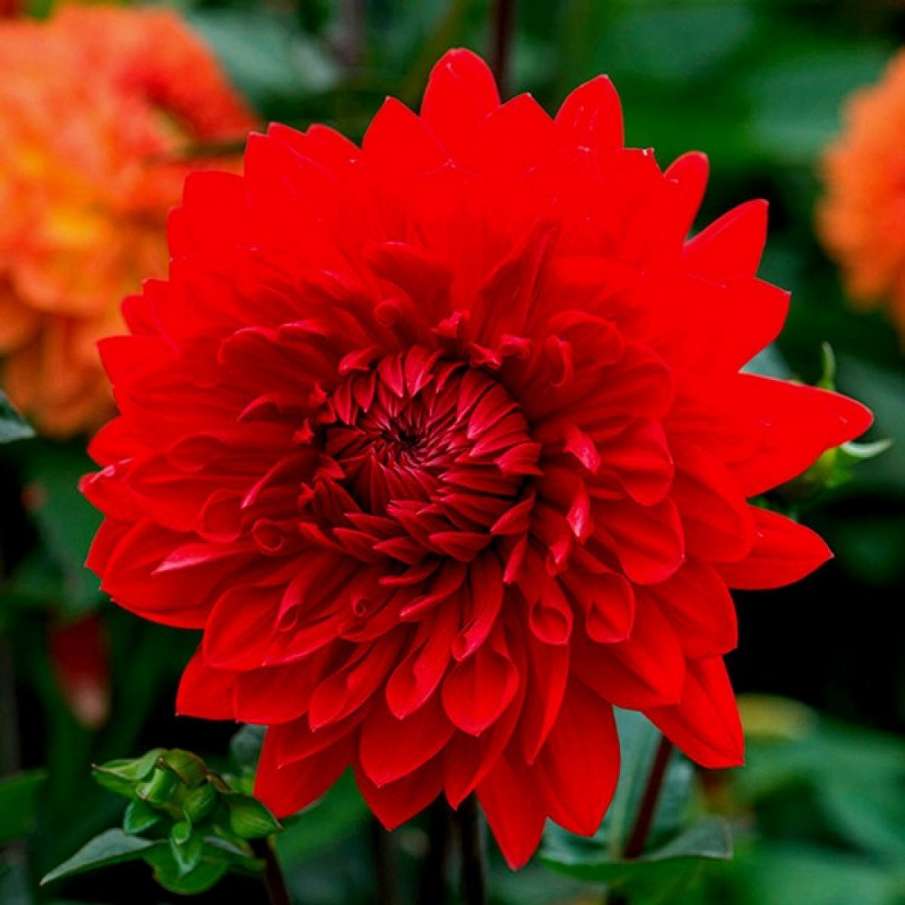 Крупноцветковый сорт. Высокие прочные стебли украшают махровые цветы, поистине гигантского диаметра. Окраска цветков ярко-красного цвета. Лепестки, широкие у основания, заостряются ближе к кончику. Является великолепным украшением любого сада. Цветет продолжительно с июля по сентябрь.