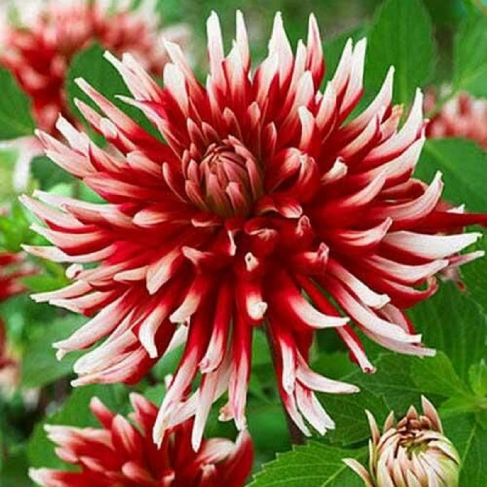 Роскошно цветущий сорт. Оригинальные красные цветки с белыми кончиками служат замечательным украшением сада. Ценится за сравнительную легкость в выращивании и очень продолжительные сроки цветения. Идеально подходит для групповых посадок. Отлично смотрится в срезке.