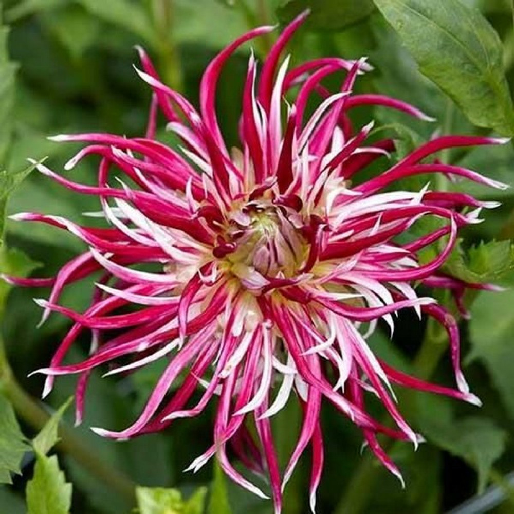 Георгина кактусовая Hollyhill Spider Woman (Холлихил Спайдер Вумен) - один из самых необычных сортов! Цветок крупный, экзотический, темно-фиолетово-красный. У центра лепестки более короткие, бело-розовые. Узкие лепестки скручены и изогнуты. Напоминают ноги паука. Высота взрослого растения 0.9-1 м., ширина 0.5м. Диаметр цветков 15-20 см.