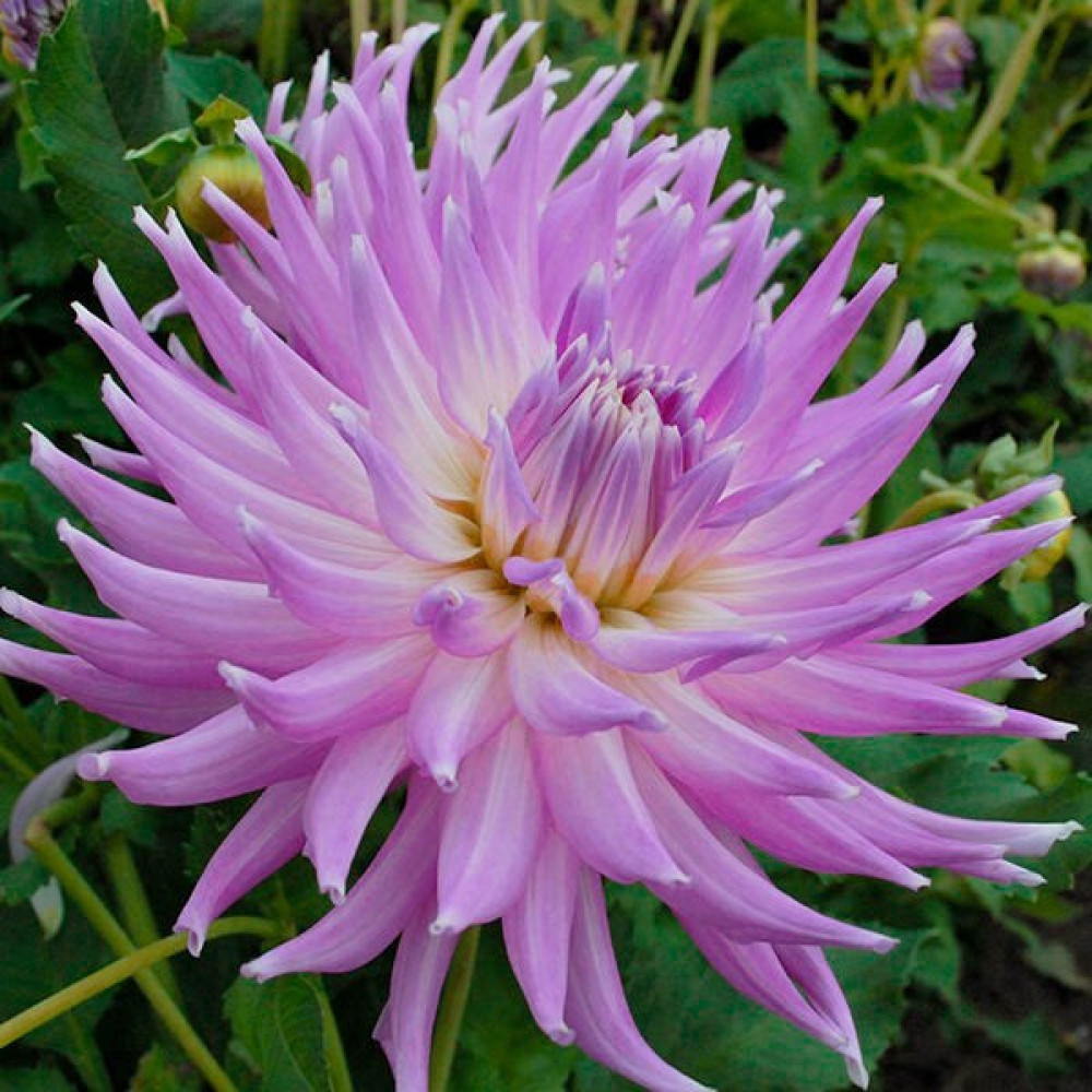 Многолетнее растение с крупными перистыми листьями и оригинальными соцветиями-корзинками. Цвет нежно-сиреневый. Сорт яркий, запоминающийся, очень необычный.