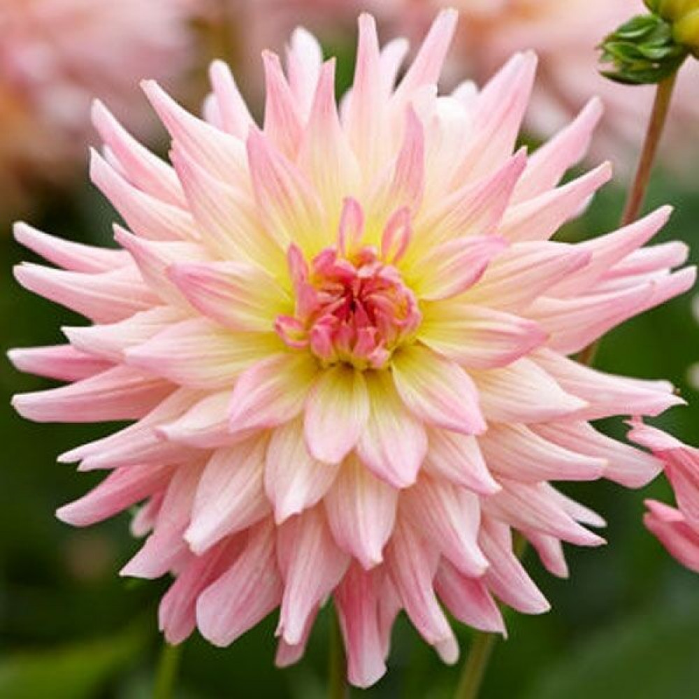 Георгина мелоди Gipsy (Джипси) относится к группе бордюрных (низкорослых) георгин. Махровые лепестки нежного розово-кораллового цвета заостряются на концах. Центр соцветия бледно желтый. Высаживают георгины на хорошо освещенных, защищенных от ветра местах. Предпочитают легкую, плодородную землю. Георгины неприхотливы и легки в выращивании. Размножение происходит путем деления клубней. На зиму клубни георгины мелоди Gipsy (Джипси) выкапывают, просушивают и хранят в сухом прохладном месте. Прекрасно растут в вазонах и горшках. Служат для украшения террас, балконов и веранд. Очень эффектно смотрятся на внешней стороне бордюра. Отличительная черта этого вида георгин в том, что их не надо подвязывать и удалять боковые побеги. Георгина мелоди Gipsy (Джипси) растет пышным невысоким кустиком. Непрерывно и продолжительно цветет, вплоть до самых заморозков. Количество в упаковке: 1 шт.