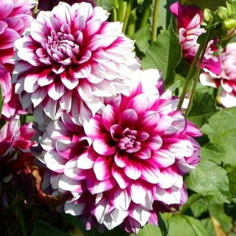 Темно-бордово-пурпурный центр, белые кончики, нижние ряды лепестков-лиловые. Высаживают георгины на хорошо освещенных, защищенных от ветра местах. Предпочитают легкую, плодородную землю. Для лучшего цветения удаляют боковые бутоны. Продолжительное цветение в период с июля по сентябрь. Трехлетние клубни требуют омоложения способом деления или черенкования.
