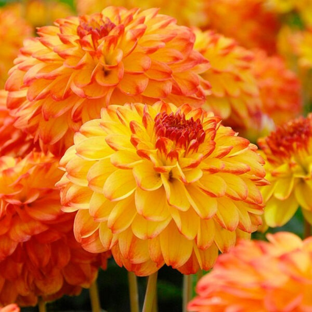 Потрясающий помпонный сорт с невероятно привлекательными соцветиями, цвет желтый с алыми кончиками! Отлично подойдет в качестве «второй скрипки» в миксбордере рядом с фиолетовыми, рубиновыми и желтыми соцветиями. В открытом грунте георгина Kasagi (Касаги) вырастает до 80 см. Однако вы можете посадить её и в контейнеры, тогда её высота будет более компактная, а соцветия не изменят своего размера, особенно при использовании подкормок! Столь аккуратные и нежные соцветия создают потрясающую легкую атмосферу и очень мило, ненавязчиво, смотрятся в цветнике. Георгина Kasagi (Касаги) предпочитает солнечное местоположение, либо же очень легкую ажурную полутень. А таких условиях соцветия будут максимально эффектными.