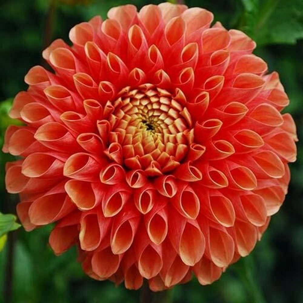 Георгина шаровидная Jowey Linda (Джоуи Линда) - цветок оранжево-красный с жёлтой каймой, диаметром 14-15 см. Плоские язычковые цветки, слегка закрученные в трубочку плотно прилегают к друг другу образовывая шар. Листья перистые, тёмно-зеленые, многочисленные. Куст мощный, пышный, стебли полые высотой 100 см. Цветет обильно и продолжительно с июля по сентябрь. Предпочитает солнечные, защищенные от ветра места, плодородные хорошо дренированные почвы.