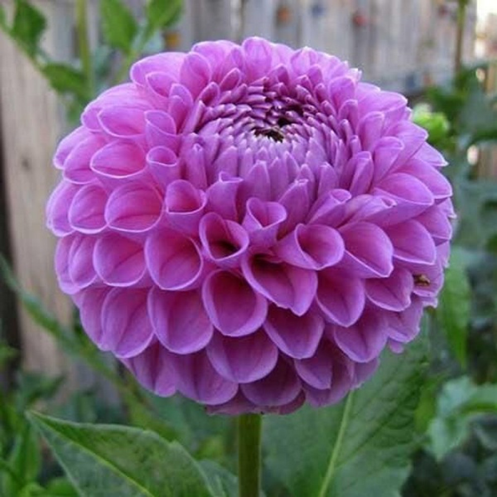 Георгина шаровидная Salvation (Сэлвейшн) – очень эффектный цветок. Ее шаровидные фиолетовые соцветия достигают в диаметре 8 см. Лепестки по всей длине свернуты в трубочку. В некоторых сортах они заворачиваются внутрь и накладываются друг на друга, напоминая черепицу на крыше.