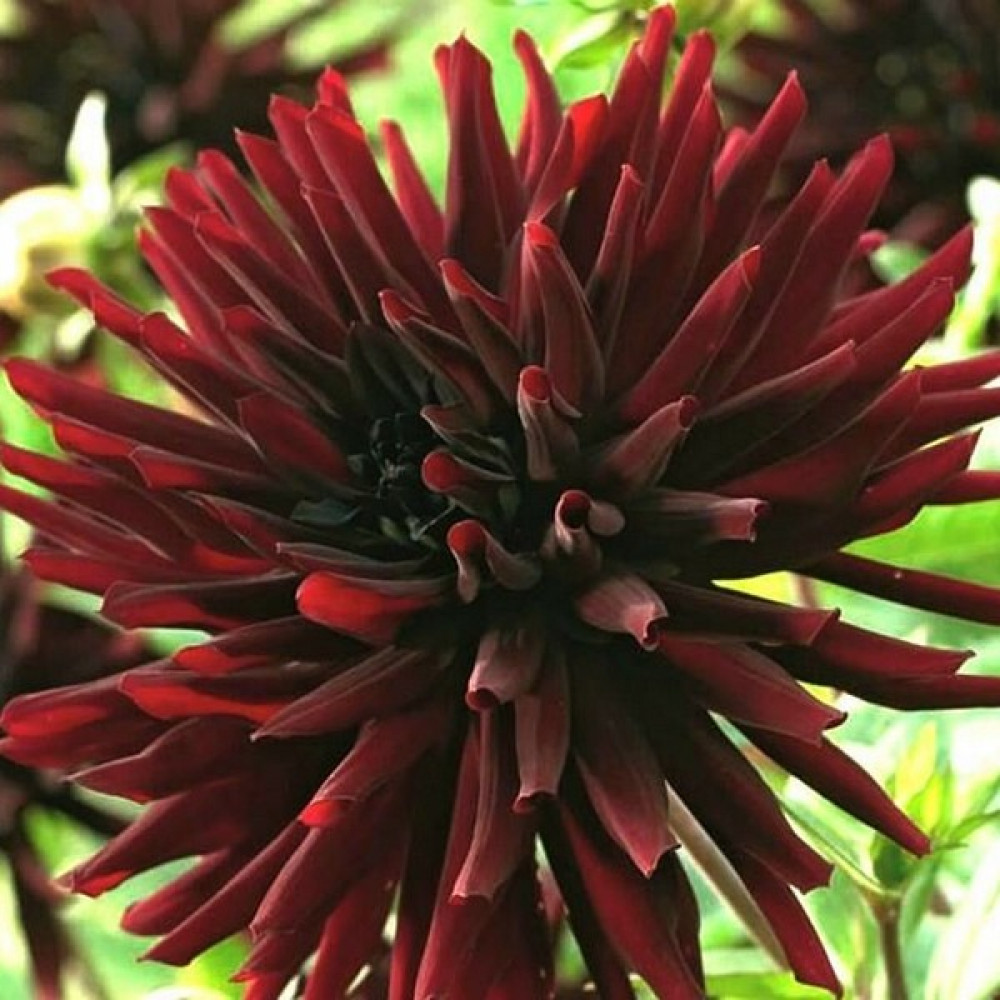 Цветение: тёмно-бордовый, в центре почти чёрный, лепестки скручены.