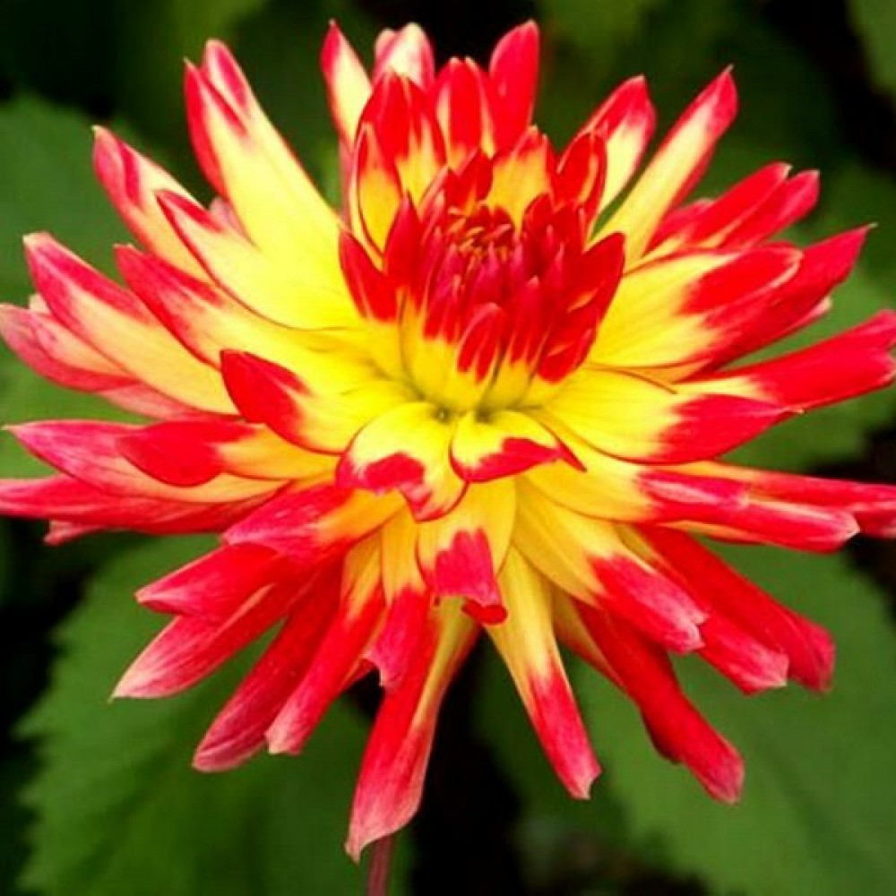 Цветение: ярко-красный с жёлтым центром.