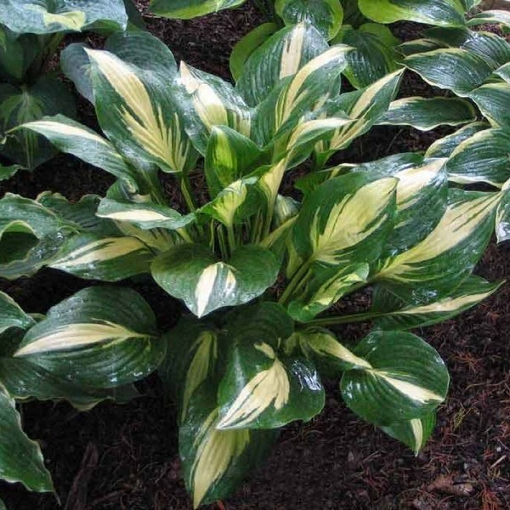Листья крупные, ярко-зеленые со сливочно-белой полосой. Цветет лавандовыми цветками. Как и большинство хост, не переносит открытого солнца.