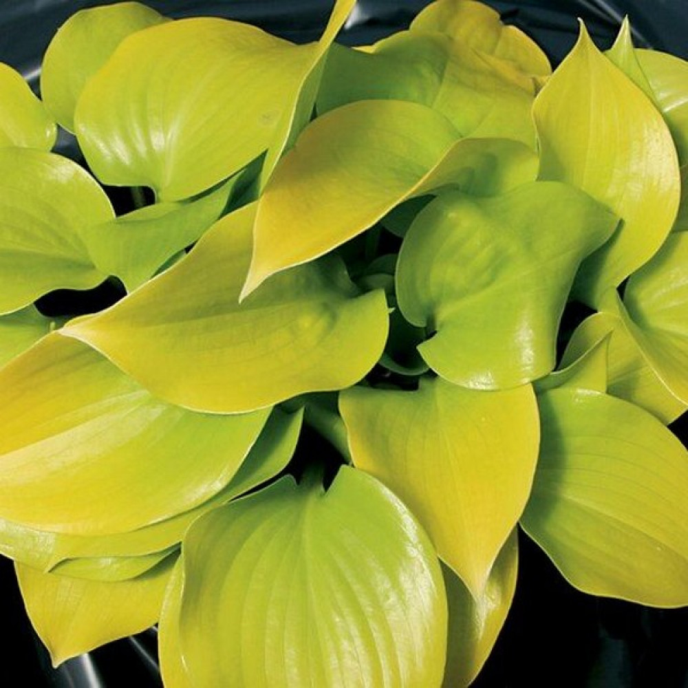Маленькая хоста. Плотные блестящие листья ярко-желтого цвета. Быстрый рост.