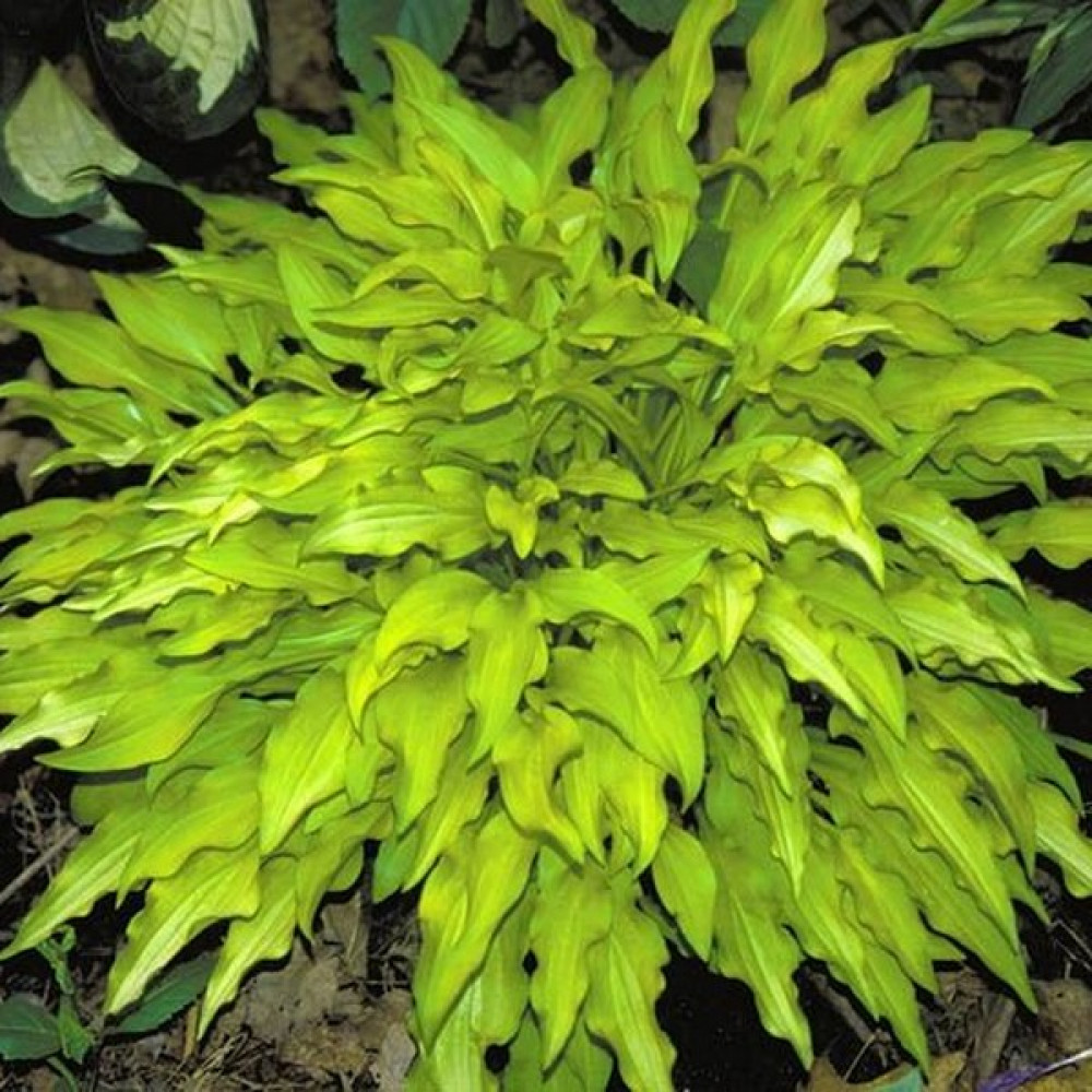 Достаточно миниатюрная хоста с зелено-золотыми, очень волнистыми листьями. Листья узкие и растут вверх, а потом вниз каскадом. Быстро разрастается в хорошие и плотные кустики.