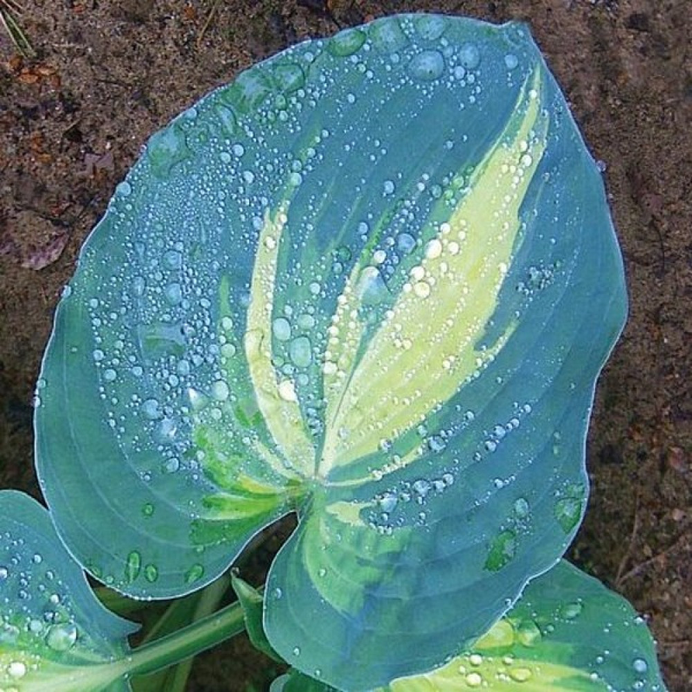 Эта, среднего размера хоста, очень популярна у садоводов!!! Листья округло-сердцевидной формы, плотные, слегка морщинистые, с хорошо выраженными жилками, темного голубовато-зеленого цвета с желто-зеленым центром, переходящим в цвет слоновой кости. Цветки белые, с лавандовым оттенком.
