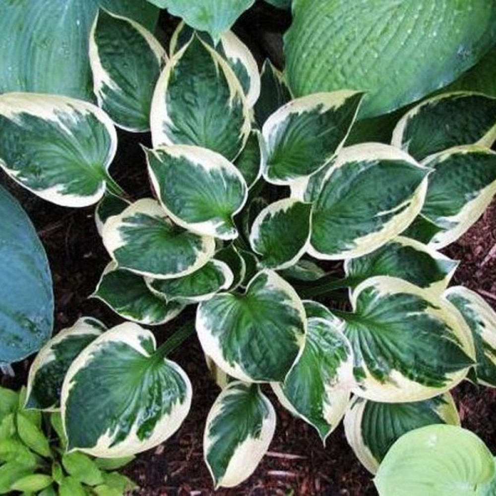 Средне-большая хоста. Насыщенно темно-зеленая листва окружена широким сливочно-белым краем. Похожа на "Патриот". Классика!!!