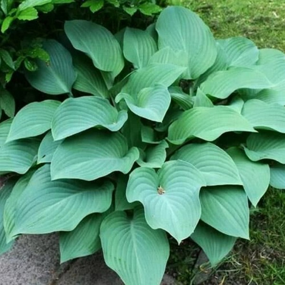 Очень большая хоста вазообразной формы. Листья морозно-сине-зелёные на длинных почти вертикальных черешках. Цветки светло-фиолетовые.