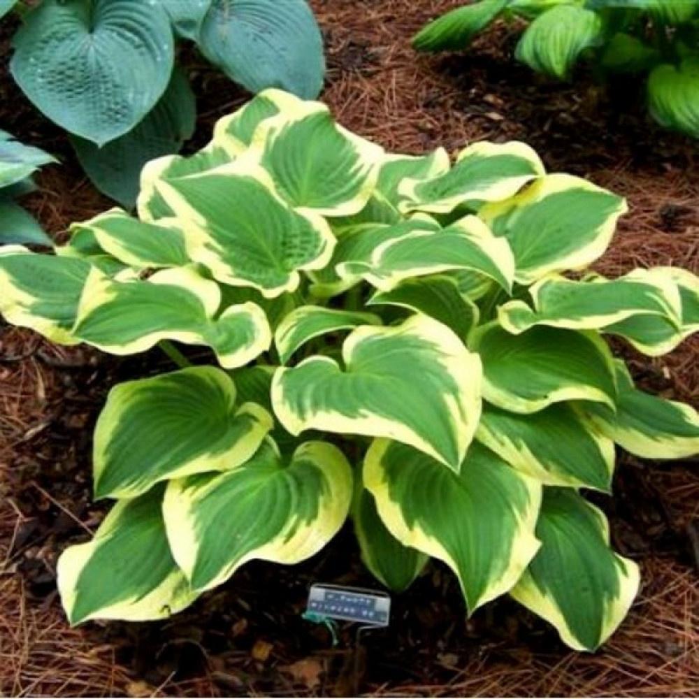 Листья широко-овальные с острым концом, светло-зелёные с кремовым окаймлением, которое в течение лета изменяет цвет на почти чисто белый. Цветет почти белыми с лёгким лавандовым оттенком цветами. Устойчивый к болезням сорт. Нарастает быстро.