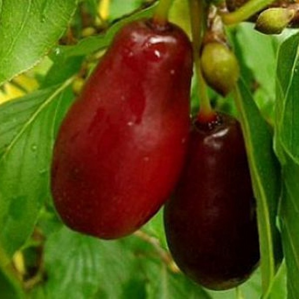 Темно-красные ягоды нежные и сладковатые на вкус, грушевидной формы. Мякоть плотная, блестящая, кожица упругая. Средний вес плода от 7 до 8,5 г. Созревание плодов начинается в середине августа и заканчивается в начале сентября. На дереве могут висеть, не осыпаясь до 4-х месяцев. Деревце формирует округлую форму с компактной кроной. Ассиметричная большая крона среднезагущенна. Высота взрослого дерева может достигать 5-6 метров.