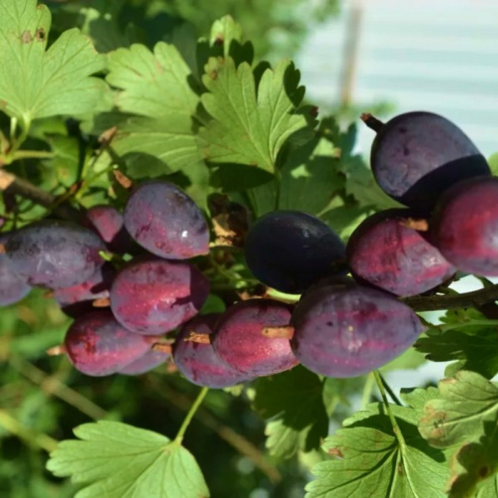 Этот ягодный куст имеет среднюю высоту и отличается особенно ветвящимися побегами. Шипы на стеблях отсутствуют, зато они густо покрыты листвой. Под нагрузкой ягод ветви склоняются вниз. Листва гладкая, окрашена в насыщенно-зеленый цвет. Ягоды средней величины, их масса составляет около 5 г. Кожица бордово-фиолетового цвета. Мякоть сочная и мясистая, вкус ее кисло-сладкий.