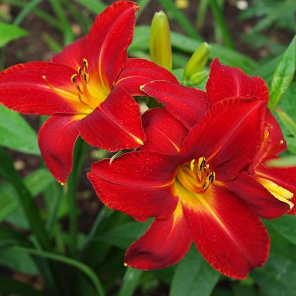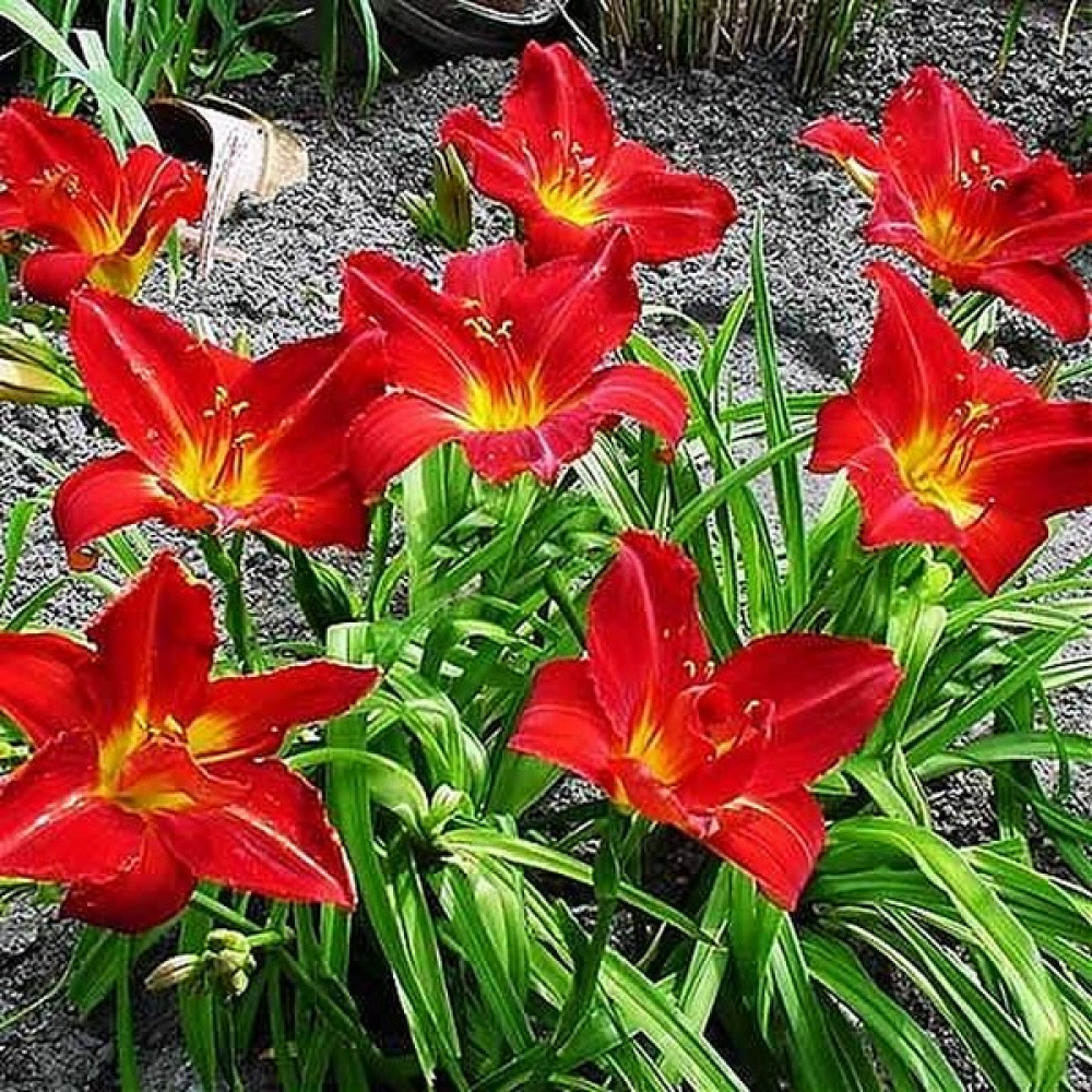 Посадка лилейника: Для посадки культуры необходима посадочная яма большего диаметра, чем корневая система растения. На дно лунки насыпается холмик из плодородной почвы, вносится столовая ложка гранулированного комплексного цветочного удобрения или перепревший навоз, разбавленный древесной золой. На вершине холмика размещают растение, аккуратно расправляя его корневую систему и засыпая ее грунтом так, чтобы корневая шейка не была заглублена ниже 2 см. Посадочную яму необходимо тщательно заполнить грунтом, последовательно уплотняя пространство таким образом, чтобы в земле не оставалось пустот. Засыпанную землей лунку обильно увлажняют.