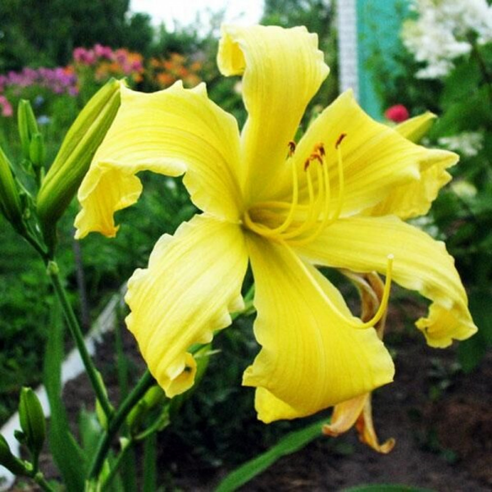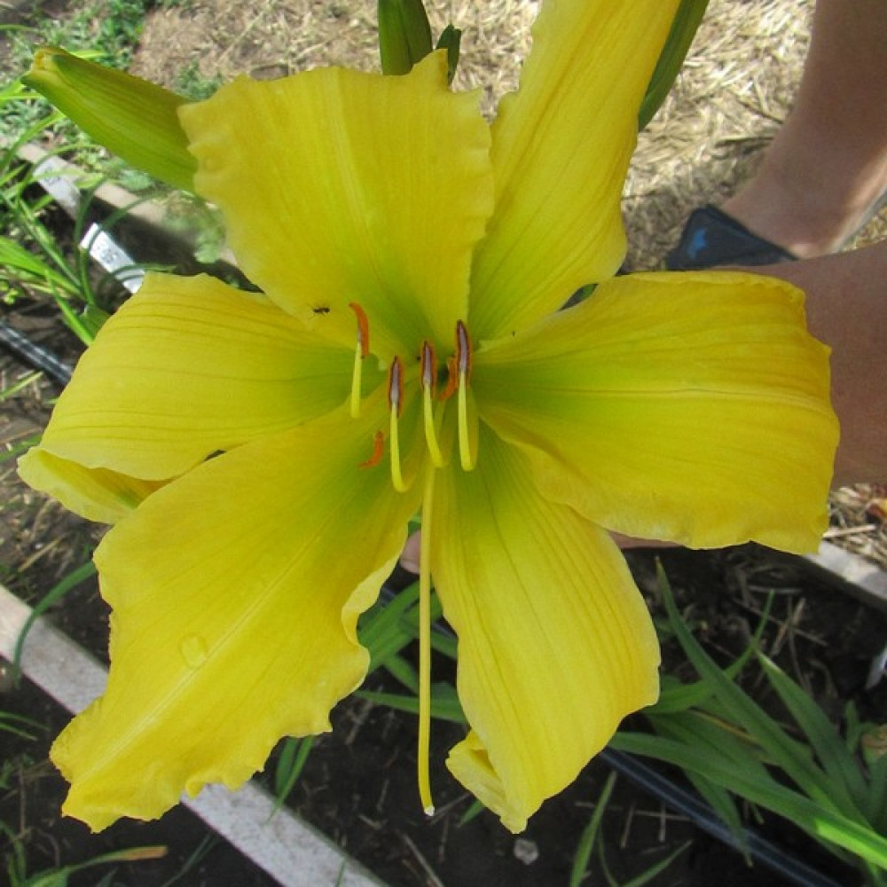 Яркий лилейник высотой 70 см и цветами 25 см. Полувечнозелёный, среднего срока цветения. Лилейник ярко - жёлтого цвета с зелёным горлом. Спайдер.