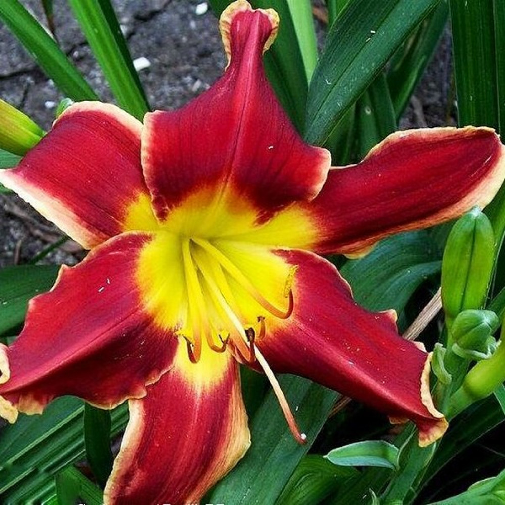 Посадка лилейника: Для посадки культуры необходима посадочная яма большего диаметра, чем корневая система растения. На дно лунки насыпается холмик из плодородной почвы, вносится столовая ложка гранулированного комплексного цветочного удобрения или перепревший навоз, разбавленный древесной золой. На вершине холмика размещают растение, аккуратно расправляя его корневую систему и засыпая ее грунтом так, чтобы корневая шейка не была заглублена ниже 2 см. Посадочную яму необходимо тщательно заполнить грунтом, последовательно уплотняя пространство таким образом, чтобы в земле не оставалось пустот. Засыпанную землей лунку обильно увлажняют.