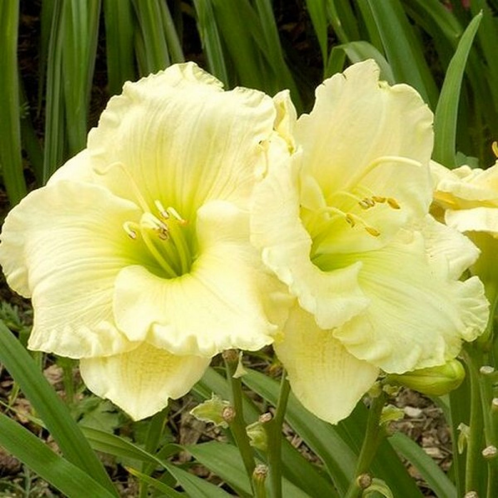 Это один из лучших бело-жёлтых сортов, лепестки у него широкие, гофрированные. Обильноцветущий и повторноцветущий. Куст прочный, не разваливается, прекрасно сохраняет форму. Листва узкая, мечевидная. Лист плотный темно-зеленый, достаточно широкий. Первый цветок распускается в июле, а период цветения довольно продолжительный - до конца августа. Цветок душистый, обладает приятным ароматом.