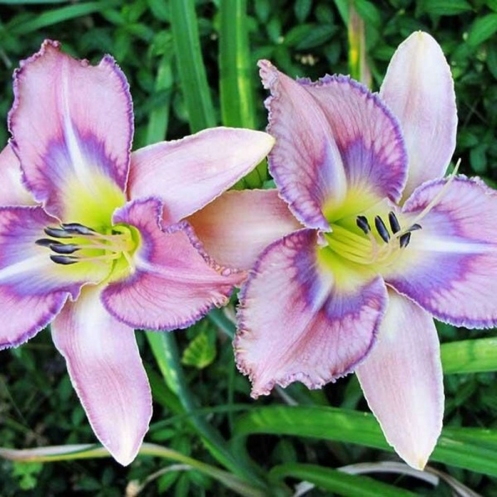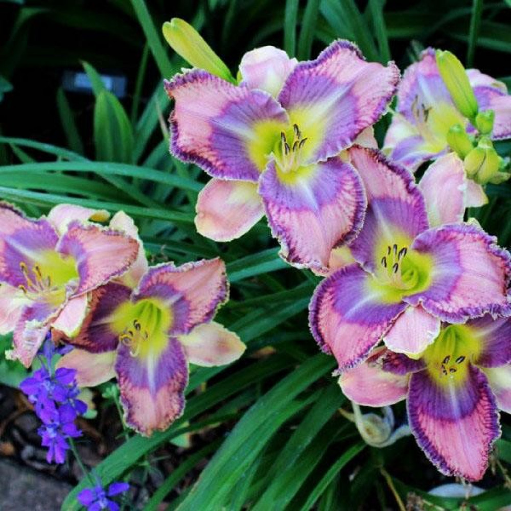 Цветок розово-лавандовый с голубоватым глазом и такой же каймой по краям гофрированных внутренних лепестков. Душистый. Вечнозеленый, тетраплоид. Цветки лилейника собраны на высоких цветоносах по несколько штук. Одновременно в соцветии цветет до трех цветков.