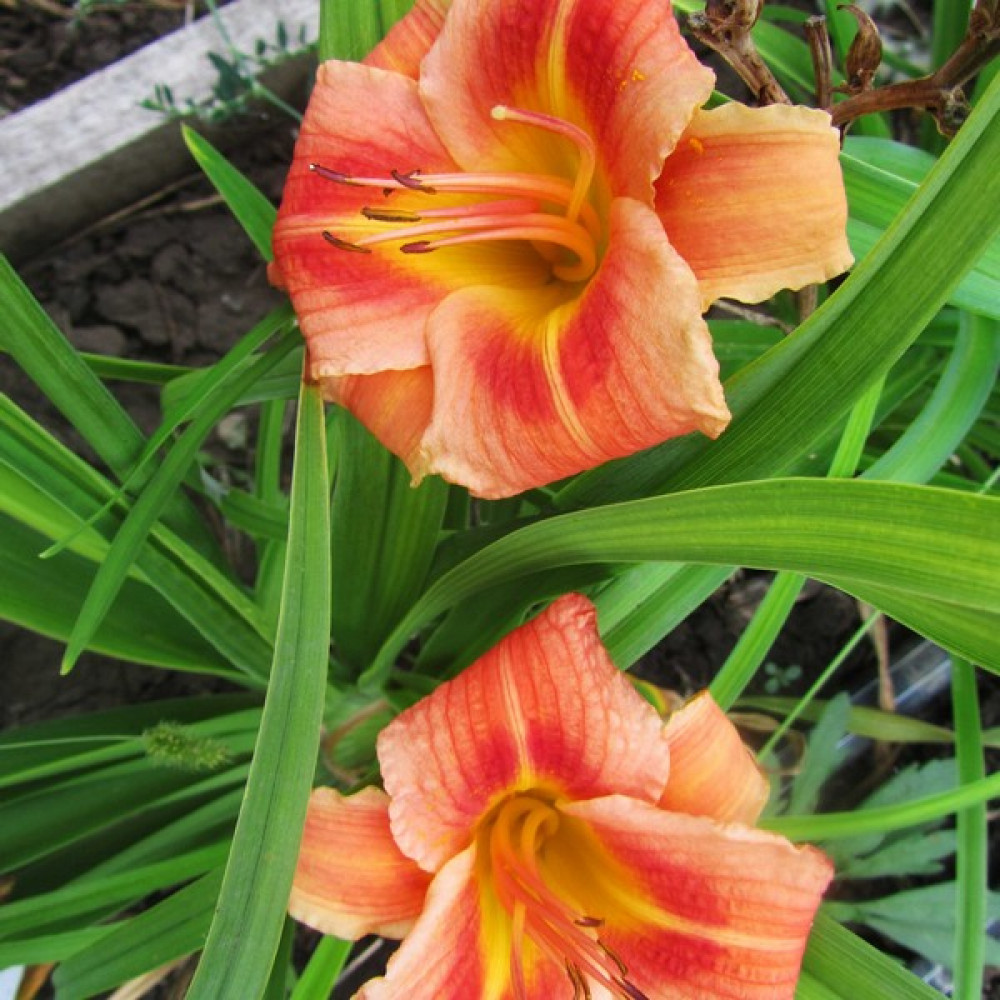 Посадка лилейника: Для посадки культуры необходима посадочная яма большего диаметра, чем корневая система растения. На дно лунки насыпается холмик из плодородной почвы, вносится столовая ложка гранулированного комплексного цветочного удобрения или перепревший навоз, разбавленный древесной золой. На вершине холмика размещают растение, аккуратно расправляя его корневую систему и засыпая ее грунтом так, чтобы корневая шейка не была заглублена ниже 2 см. Посадочную яму необходимо тщательно заполнить грунтом, последовательно уплотняя пространство таким образом, чтобы в земле не оставалось пустот. Засыпанную землей лунку обильно увлажняют.