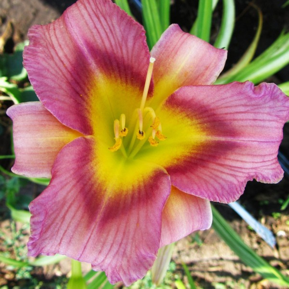 Нежно-пурпурный цветок, с темным пурпурным глазом вокруг желто-зеленого горла.