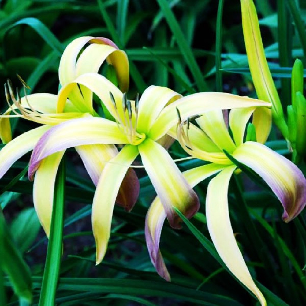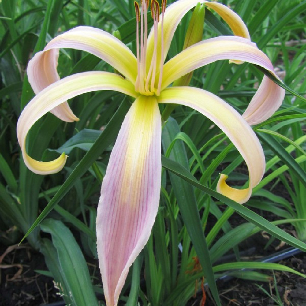 Лилейник - спайдер, паукообразные цветки, очень крупные с узкими листочками розово-лавандового цвета, горло большое, салатовое. Очень необычен, тропики - да и только! Повторноцветущий.