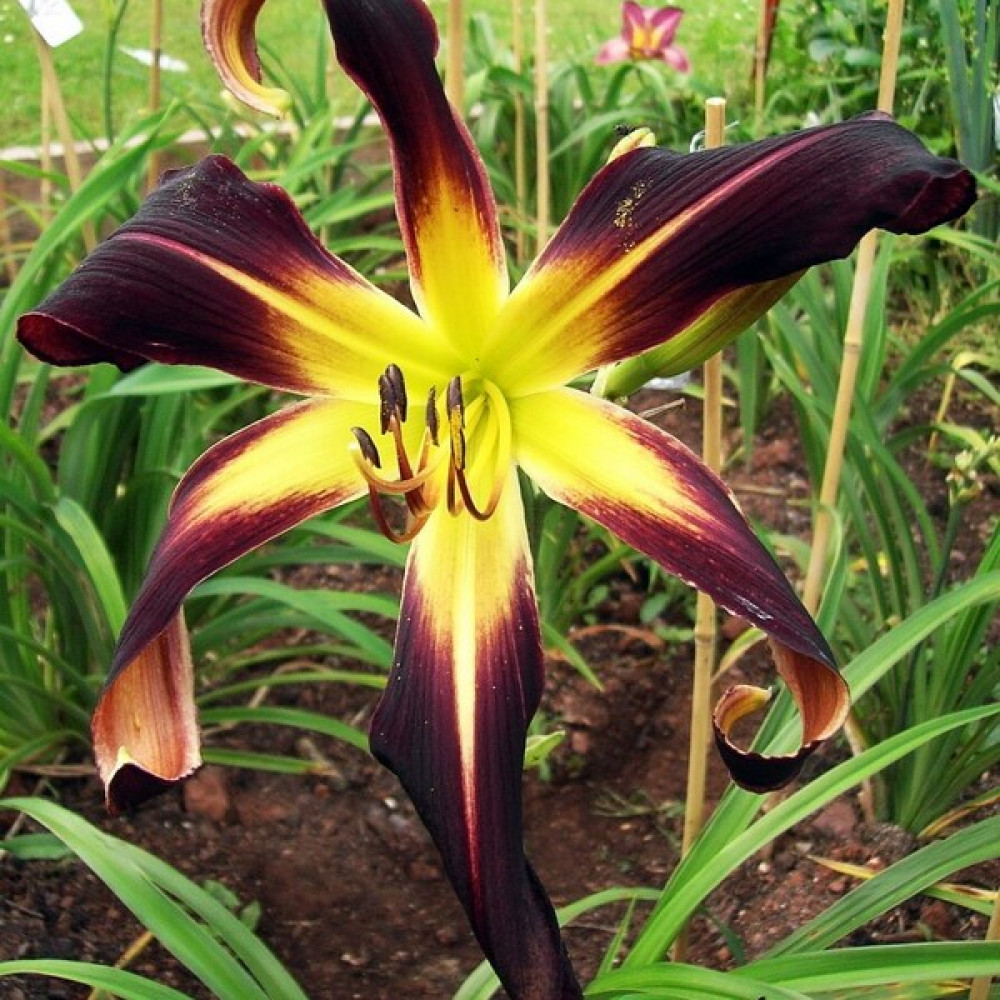 Посадка лилейника: Для посадки культуры необходима посадочная яма большего диаметра, чем корневая система растения. На дно лунки насыпается холмик из плодородной почвы, вносится столовая ложка гранулированного комплексного цветочного удобрения или перепревший навоз, разбавленный древесной золой. На вершине холмика размещают растение, аккуратно расправляя его корневую систему и засыпая ее грунтом так, чтобы корневая шейка не была заглублена ниже 2 см. Посадочную яму необходимо тщательно заполнить грунтом, последовательно уплотняя пространство таким образом, чтобы в земле не оставалось пустот. Засыпанную землей лунку обильно увлажняют.