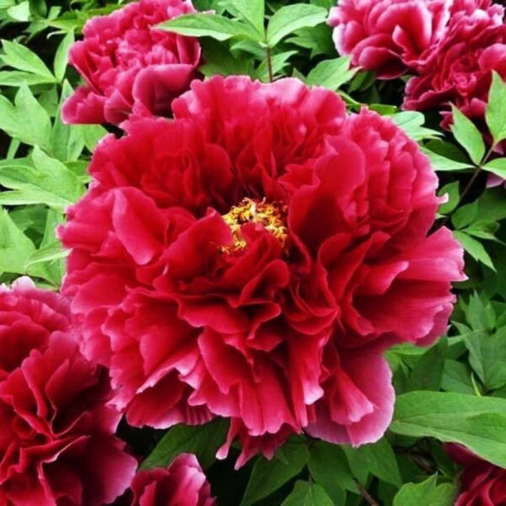Цветок розовидный, крупный, темно-розовый с красным отливом. Побеги прочные, куст высокий. Цветет бильно. Корень пиона привит на травянистый.