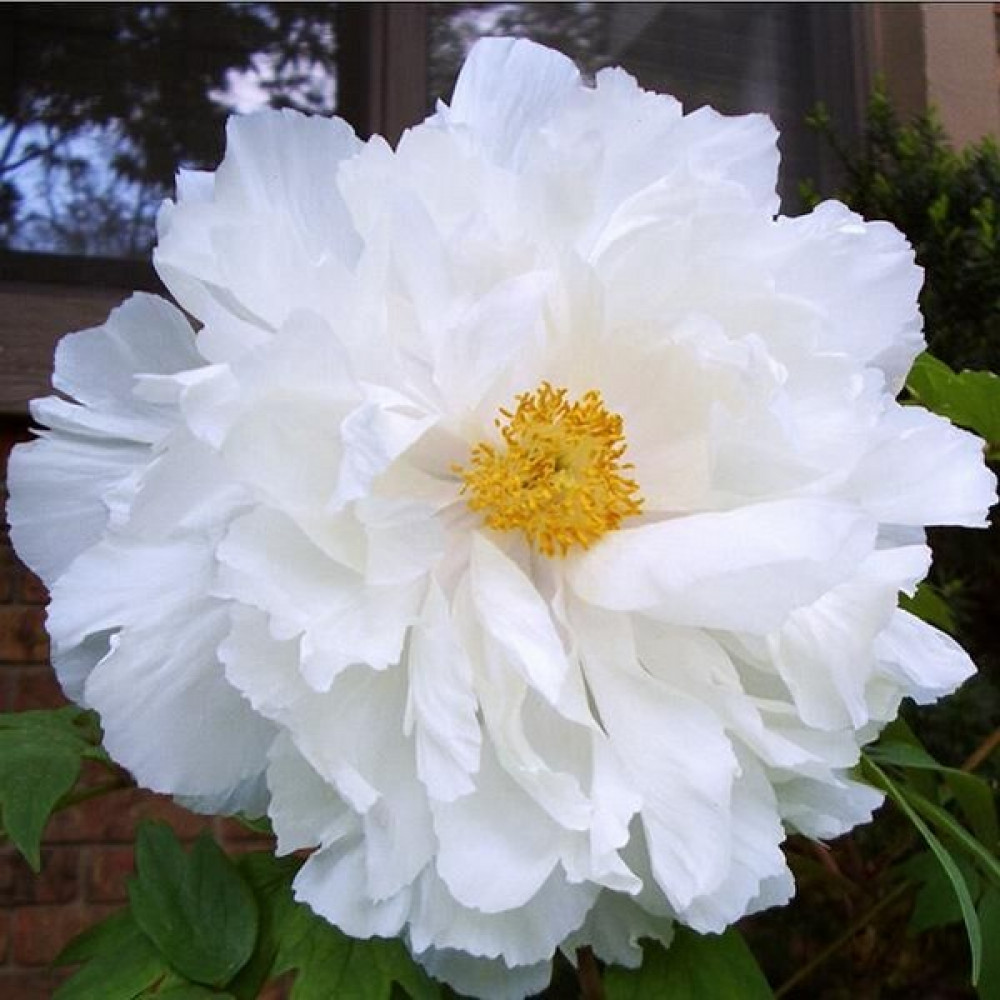 Сорт с белоснежными, полумахровыми цветками и золотистым венцом из многочисленных тычинок. Старинный сорт, в Китае именуемый Yu Ban Bai, считается одним из самых белых. Однако, завоевал он любовь не только уникальным оттенком цветов. Напоминающие лотосы цветы, хорошо заметны на фоне темно-зеленой резной листвы. Благодаря жестким цветоносам, пионы прекрасно смотрятся в букете. Их легкий сладковатый аромат ненавязчиво создает настроение весны и радости. Корень пиона привит на травянистый.