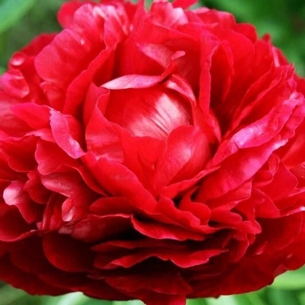 Махровый розовидный. Средне-ранний. Цветок блестящий, ярко-огненно-красный с легким сиреневым отливом. Плотного красивого сложения. Не выгорает. Лепестки крупные, складчатые, образуют в центре как бы несколько макушек. Куст раскидистый. Стебли непрочные. Цветёт обильно. Изумительный сорт для украшения сада и в букете. Один из лучших красных гибридов. Чемпион многих выставок.