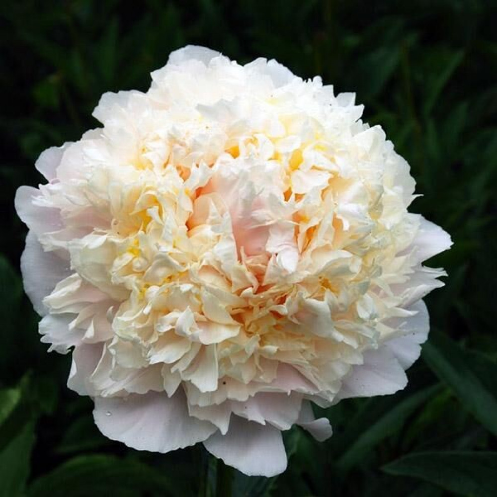 Махровый, бомбовидный. Цветки крупные. Середину цветка образуют петаллодии (это бывшие тычинки, которые трансформировались в тонкие короткие лепестки) желтого оттенка. Внешние лепестки крупные, округлые, белого цвета. Красиво пион Cheddar Cheese (Чеддер Чиз) выглядит и после отцветания, внимание привлекает компактый куст с резной листвой. Служит для украшения цветников, бордюров, как в одиночных, так и в групповых посадках. Используется для создания букетов.