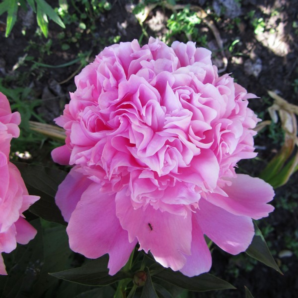 Пион среднего срока цветения. Махровый, розовидный. Лепестки ярко-розовые. Очень красивый!