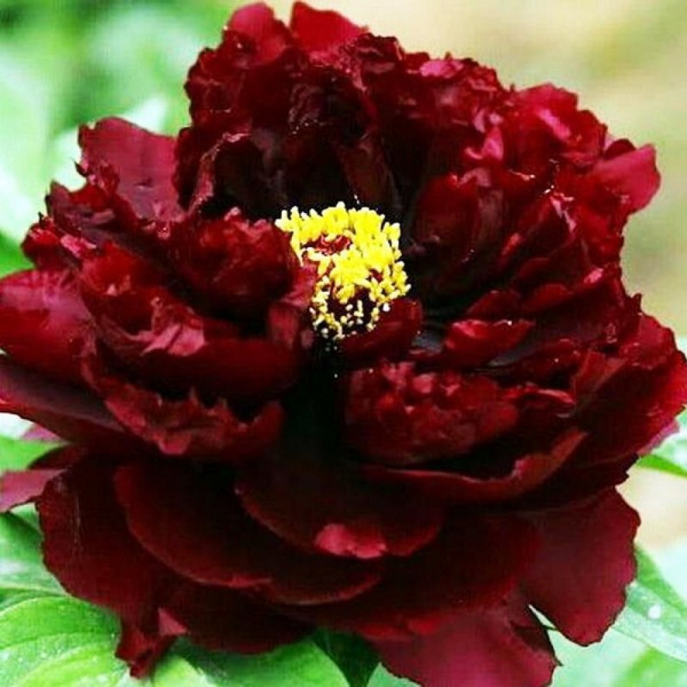 Форма цветка может быть анемоновидная и корончатая. Часто на одном кусте встречаются цветки разного типа. С внутренней стороны лепестки зеленоватые. Цветки пурпурно-красные, с серебристым отливом. Имеют насыщенный аромат. Корень пиона привит на травянистый.