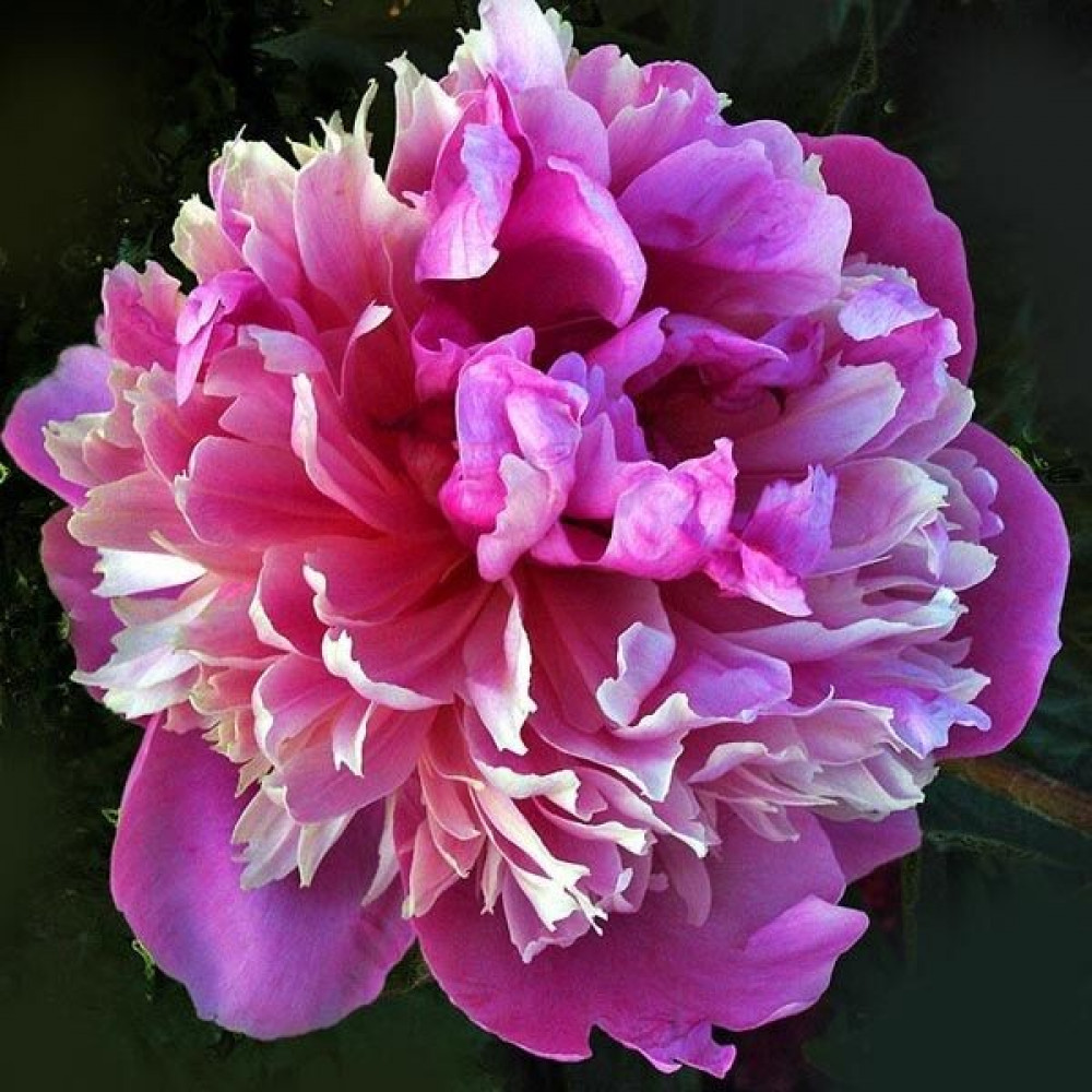 Необычайно большие и красивые цветы. Форма цветка бомбовидная. Внешние лепестки крупные, округлые ярко-розового цвета. Внутренние - короткие, узкие бело-кремово-розовые с малиновыми штрихами. Обладает нежным ароматом.