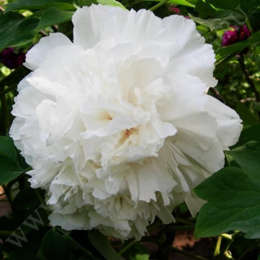 Кустарник эффектнее смотрится в одиночных посадках. Цветки крупные. Лепестки белоснежного окраса, расположены плотно друг к другу, скрывая сердцевину. Бутоны распускаются одновременно. Корень пиона привит на травянистый.
