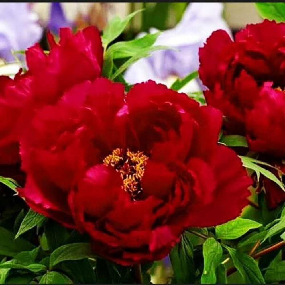 Название сорта говорит само за себя - у него огромные ярко-красные цветы. Контраст еще больше подчеркивают зеленые листья, которые быстро разрастаются. Корончатая форма, лист крупный. Цветение в конце сезона. Корень пиона привит на травянистый.
